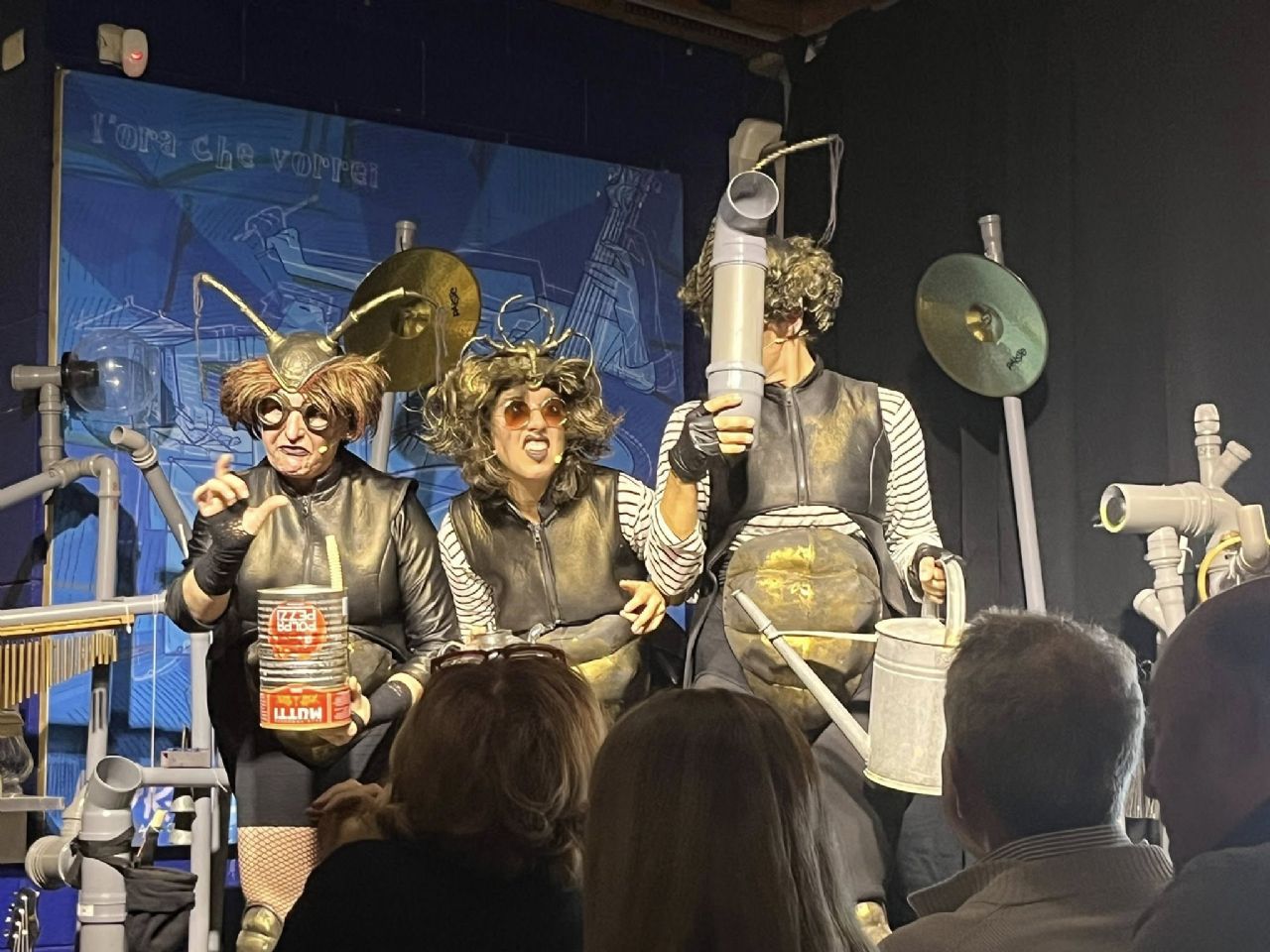 Una creazione di Rita Pelusio, tra buffoneria contemporanea, lingua inventata e un jukebox vivente, che coinvolge il pubblico con energia, sarcasmo e un messaggio potente: